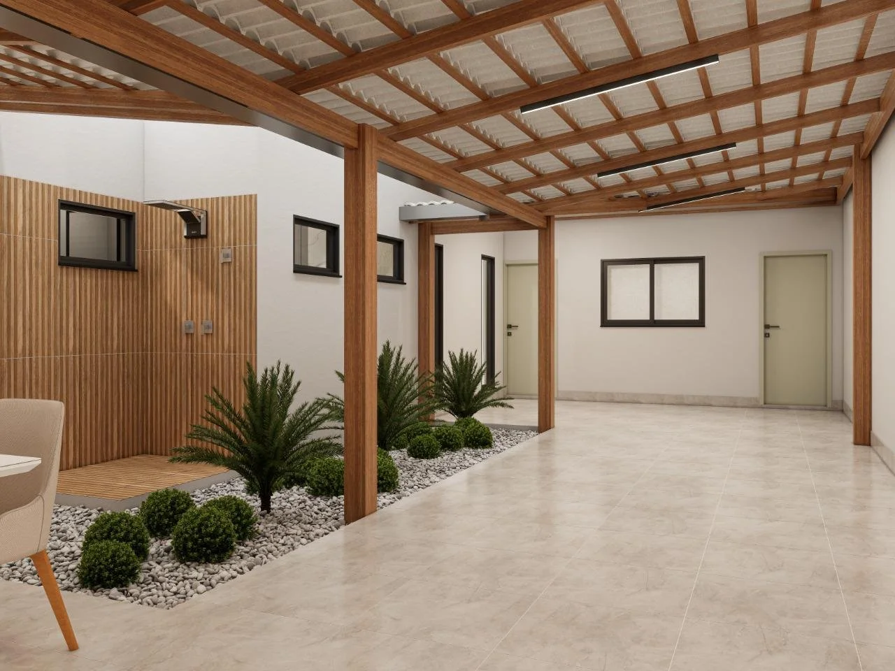 Com uma leitura cuidadosa dos espaços, aproveitamos boa parte da estrutura existente, criamos novos ambientes, e reformulamos completamente o interior da casa. A área gourmet, construída do zero, virou um ponto de encontro cheio de charme e funcionalidade.